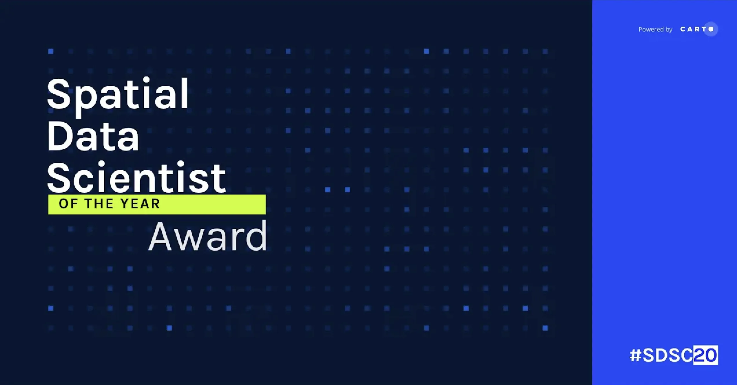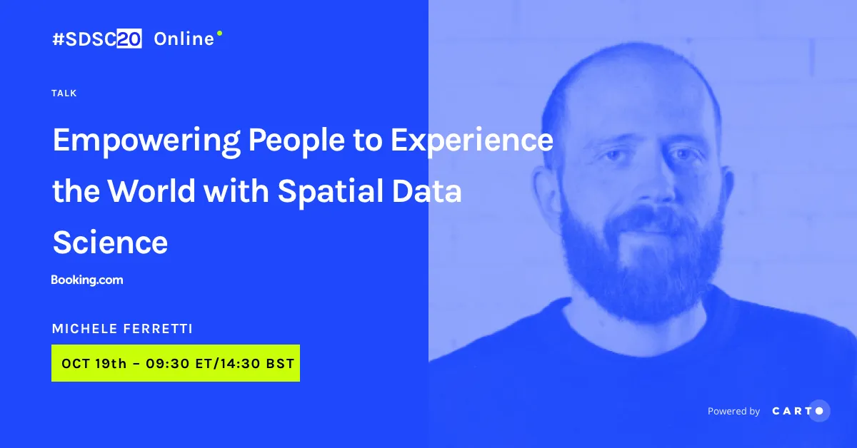 At #SDSC20, The Spatial Data Scientist of the Year Award was presented to - for his work to advance research in Spatial Data Science. You can read more about Dani and other shortlisted candidates on our blog.