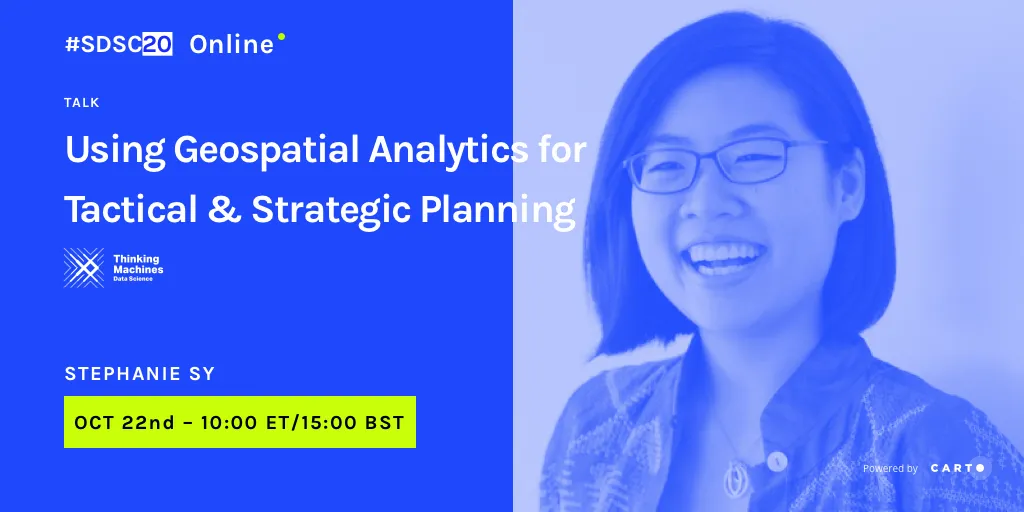 Problem solvers from Data Science, GIS and Analytics communities came together in a virtual event to look at 38 different spatial analysis projects in the private and public sectors, as well as non-profits and academia. We looked at new types of location data, innovative spatial modeling techniques as well as best practice for sharing location-based insights.